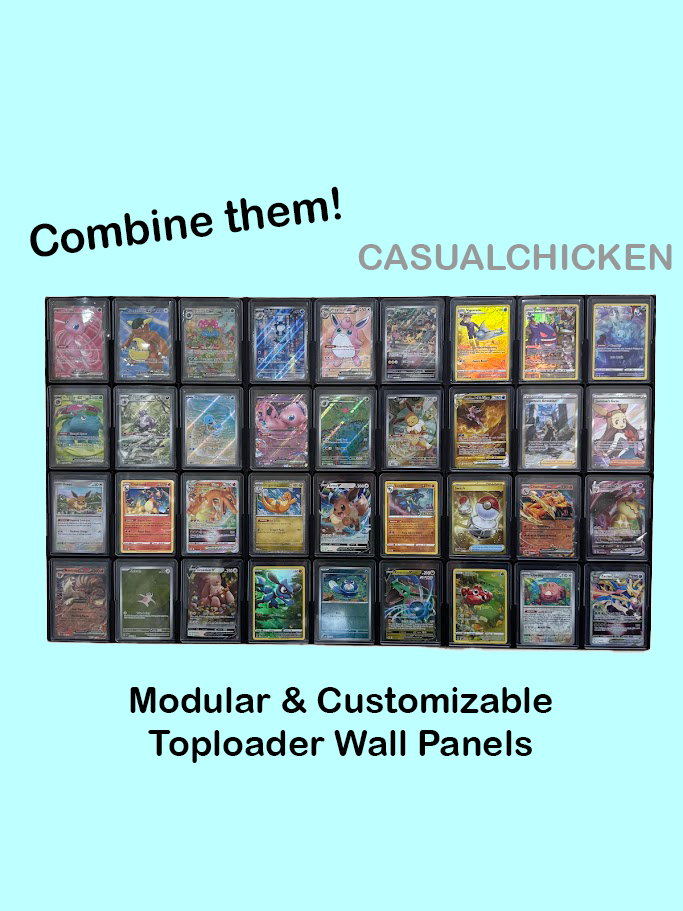 This modular toploader wall display frame is designed to showcase your collection while keeping your cards protected.