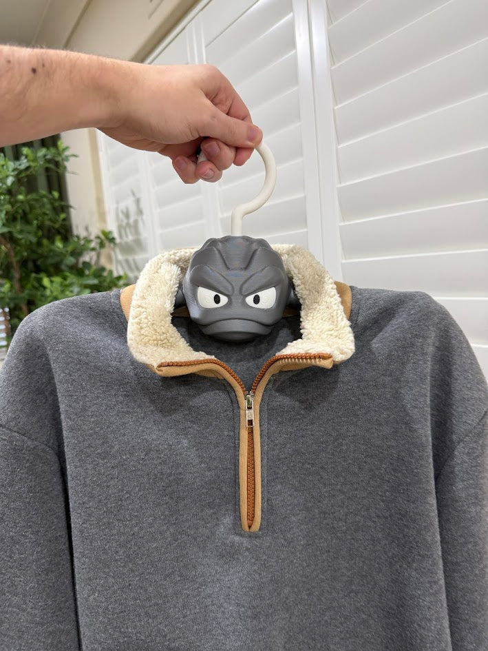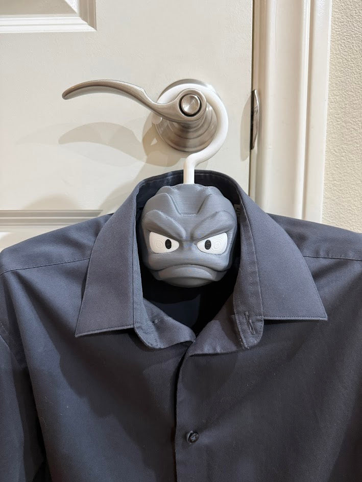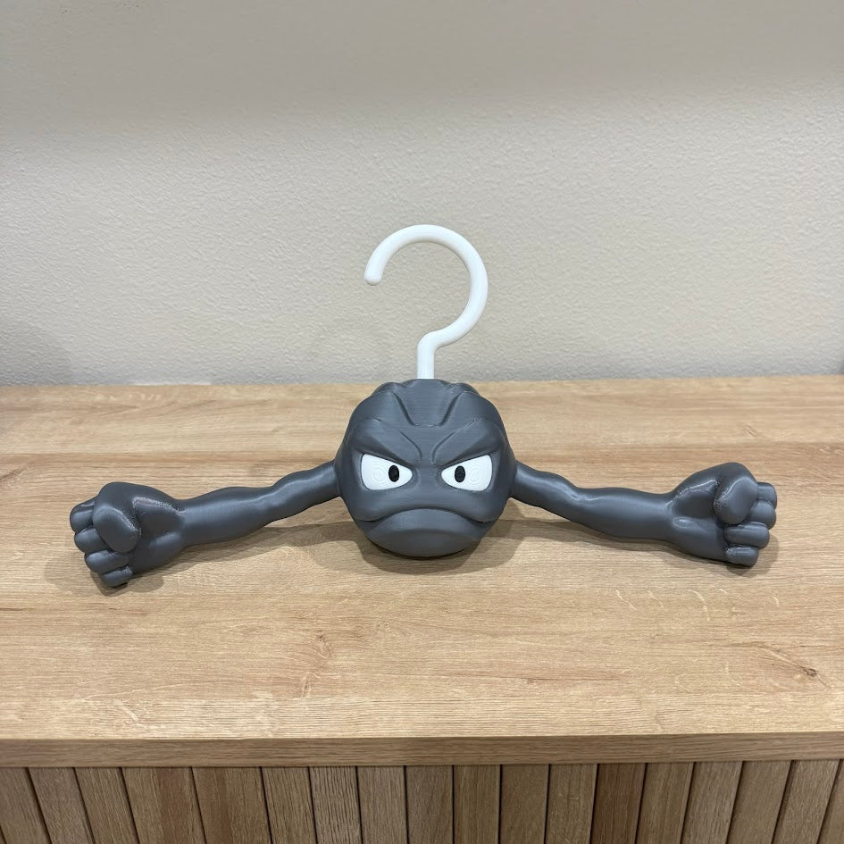 This Geodude inspired clothing hanger has his arms out, ready to hold your clothes. He will happily hold your shirts, jackets, hoodies, dresses, and more. This guy will always put a smile on your day when you look into your closet to get ready to start the day.